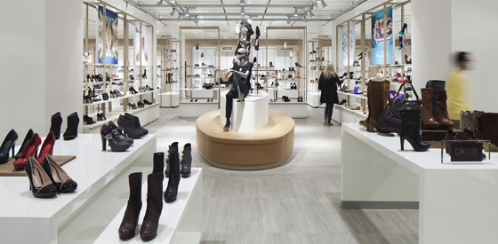 Finally, the new shoe department is a haven of tranquillity. White, open frame shelving units and display tables adorn the area and give it a very spacious feel. The central display feature, topped with a mannequin, doubles as a seating area for trying on footwear. From the outside the windows tell branded stories that present trends in magazine style editorial presentations and these tales continue to unravel instore. It is expected that this modern, forward thinking and welcoming new store design will be rolled out to all 86 stores in the estate soon and will place Karstadt firmly on the fashion radar once again. Images courtesy of Archard Architectural.